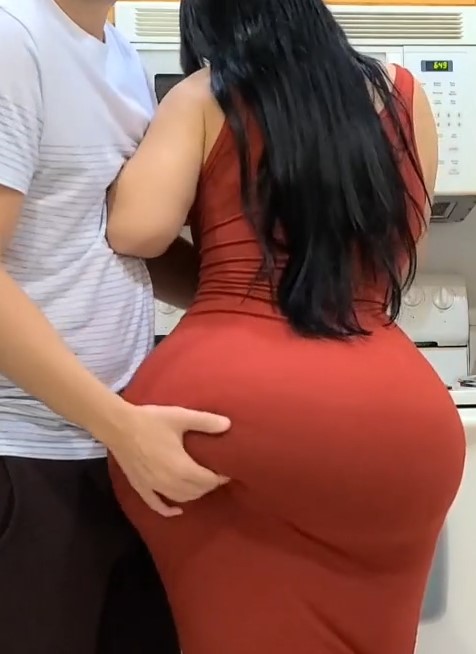 Красивая мачеха с большой жопой трахается на кухне